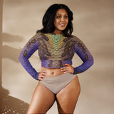 Rep your scales wherever you go with this cropped rash guard! It protects from the sun, wind, and other elements whether on land or in sea!