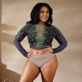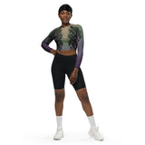 Rep your scales wherever you go with this cropped rash guard! It protects from the sun, wind, and other elements whether on land or in sea!