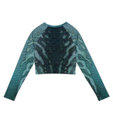 Rep your scales wherever you go with this cropped rash guard! It protects from the sun, wind, and other elements whether on land or in sea!