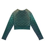 Rep your scales wherever you go with this cropped rash guard! It protects from the sun, wind, and other elements whether on land or in sea!