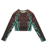 Rep your scales wherever you go with this cropped rash guard! It protects from the sun, wind, and other elements whether on land or in sea!