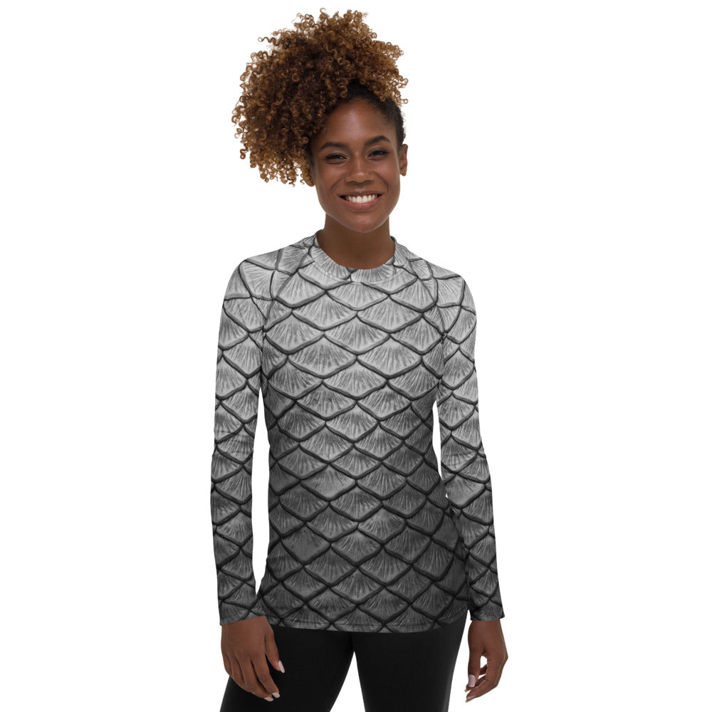 Rep your scales wherever you go with this relaxed fit rash guard! It protects from the sun, wind, and other elements whether on land or in sea!