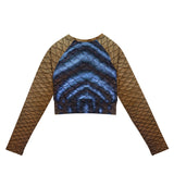 Rep your scales wherever you go with this cropped rash guard! It protects from the sun, wind, and other elements whether on land or in sea!