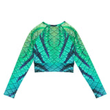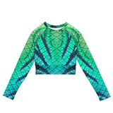 Rep your scales wherever you go with this cropped rash guard! It protects from the sun, wind, and other elements whether on land or in sea!