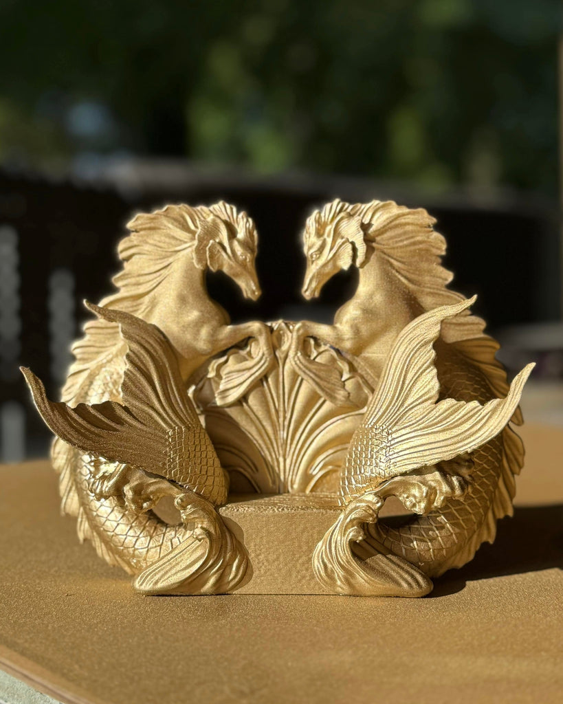 Celebrate our incredible new Kelpie Throne with this whimsical miniature version! The Kelpie Throne was a brand new photo feature at our Carolina Renaissance Festival booth this 2025 season. These mini thrones are 3D printed using the exact same original 3D throne file that was digitally sculpted by Bryn.