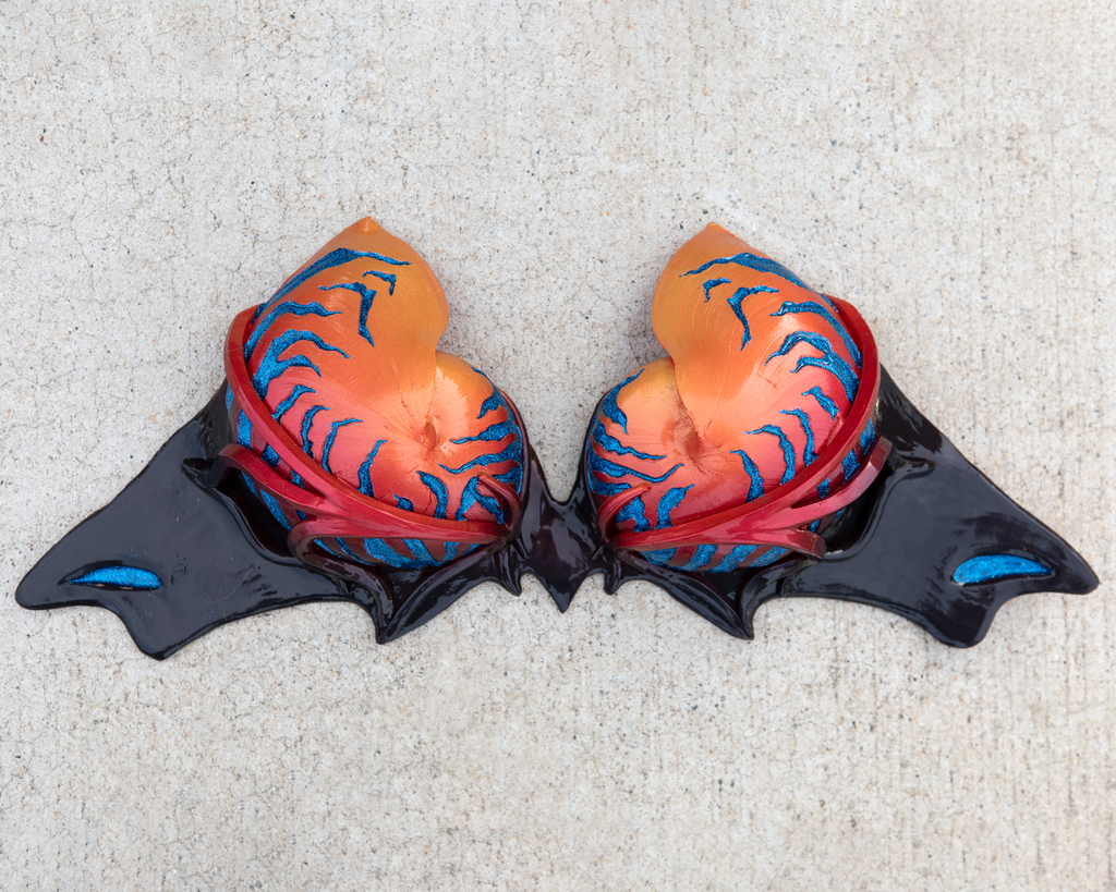 The Lothlorien silicone top is a beautiful Finfolk top design featuring Nautilus Shells. These tops are 100% silicone and use criss-crossing lycra straps that tie around stainless steel O-rings in the back to disperse pressure points and strain evenly, instead of only across your neck like typical halter styles, meaning no more bulkiness or heavy sogginess.