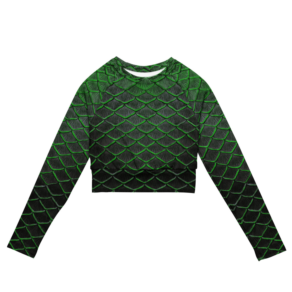 Rep your scales wherever you go with this cropped rash guard! It protects from the sun, wind, and other elements whether on land or in sea!