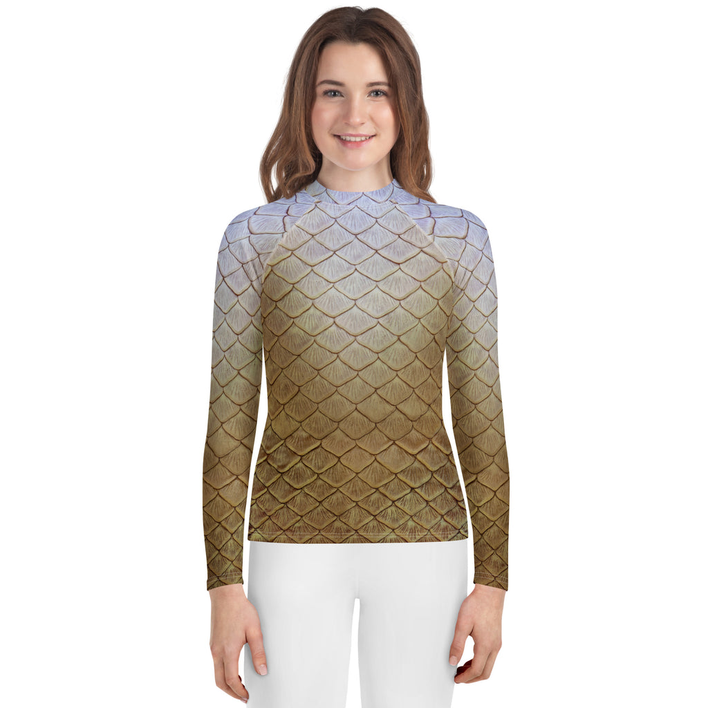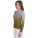 For your little guppies, rep your scales wherever you go with this youth rash guard! It protects from the sun, wind, and other elements whether on land or in sea!
