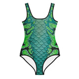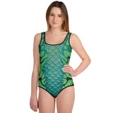 For your little guppies, show your true mermaid spirit with this colorful and vibrant youth one piece swimsuit! Features a double-layered front with 38–40 UPF.