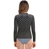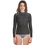 For your little guppies, rep your scales wherever you go with this youth rash guard! It protects from the sun, wind, and other elements whether on land or in sea!