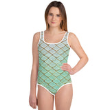 For your little guppies, show your true mermaid spirit with this colorful and vibrant youth one piece swimsuit! Features a double-layered front with 38–40 UPF.
