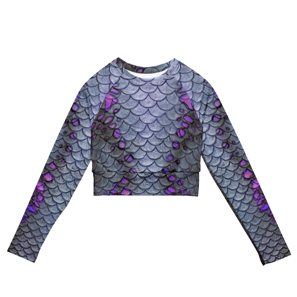 Rep your scales wherever you go with this cropped rash guard! It protects from the sun, wind, and other elements whether on land or in sea!